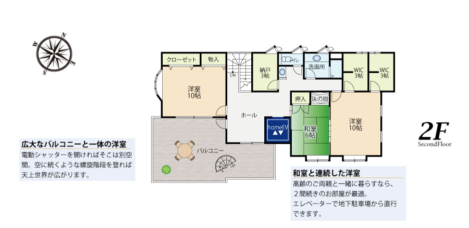 2階にはバルコニー直結の10帖の洋室と、和室を備えた10帖の洋室があります。。